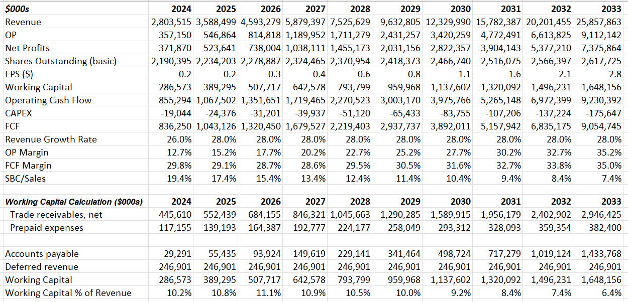 - Government Business: I continue to forecast Palantir’s government business will grow by 20% in the coming years, driven by their strong market position in defense and battlefield operations. The partnership with L3Harris could help Palantir accelerate its AI penetration in the defense market. As noted in their earnings call, Palantir has achieved strong US government bookings, laying a solid foundation for future growth in the government sector.