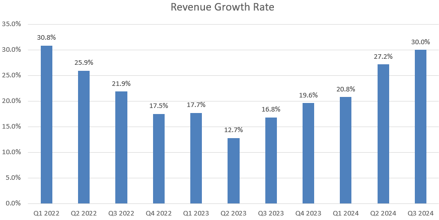 Palantir just reported a strong Q3 result with 30% revenue growth, beating the market expectations. Palantir indicated accelerated demand for their artificial intelligence platform, or AIP, technology, across both commercial and government markets. I reiterate a “Buy” rating with a fair value of $55 per share.