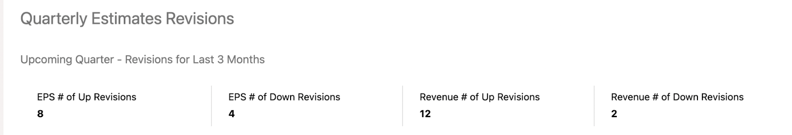On this note, I also think it is important to point out that in the last 3 months, earnings revisions have been fairly positive (but not overwhelmingly positive which means the company still has some skepticism they can overcome). Looking at revenue, there have been 12 upward revisions, and 2 downward.