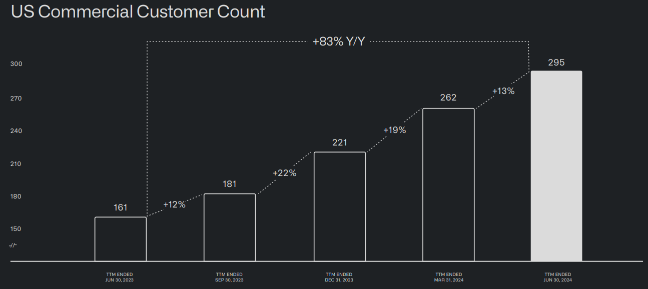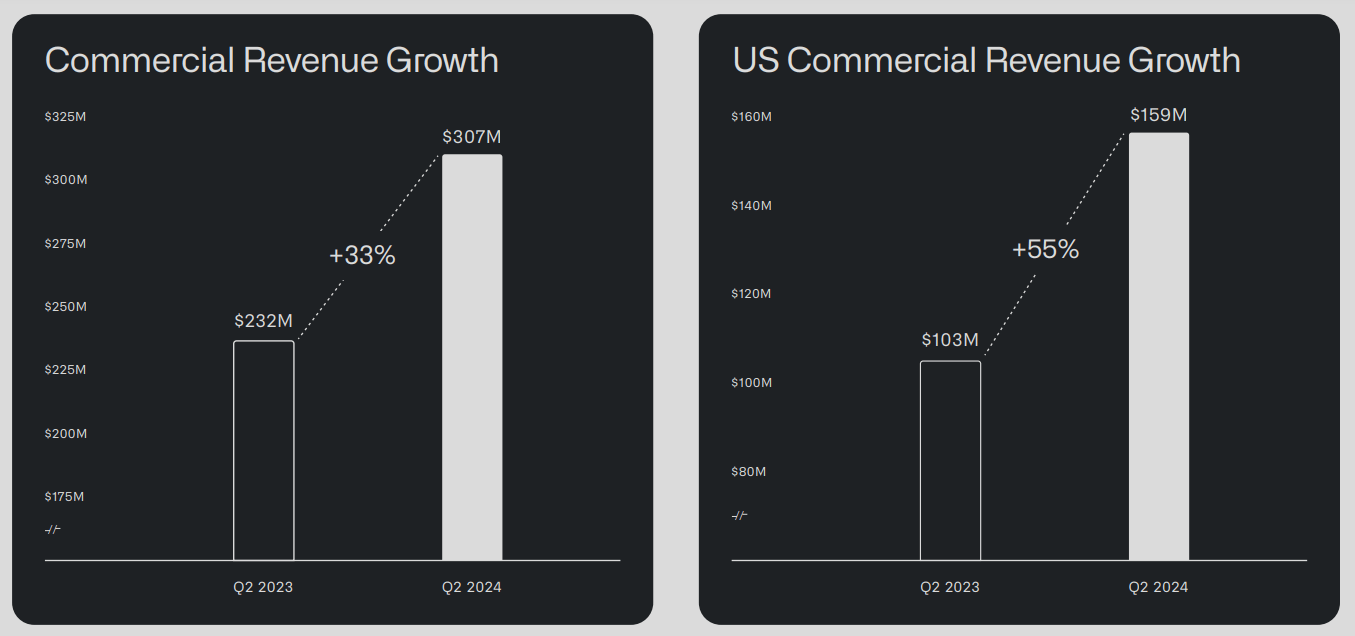 • Palantir’s AI platforms, Gotham and Foundry, cater to both government and commercial sectors, leveraging favorable industry trends and a modular sales approach to drive growth.