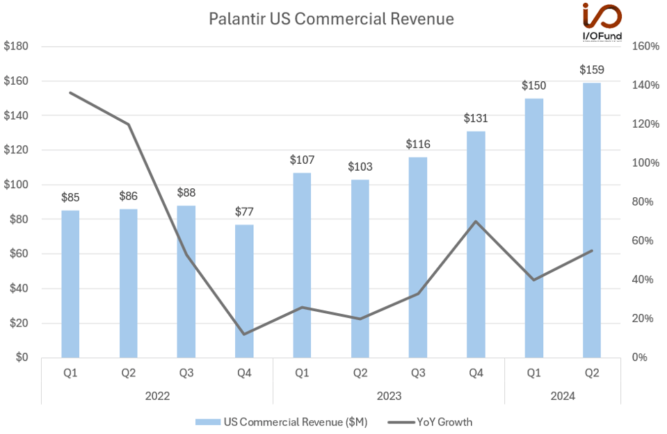 55% YoY revenue growth in US commercial to $159 million, accelerating from 40% YoY in Q1.