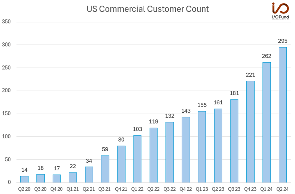 83% YoY growth in US commercial customers to 295 and 98% YoY growth in US commercial deals closed to 123.