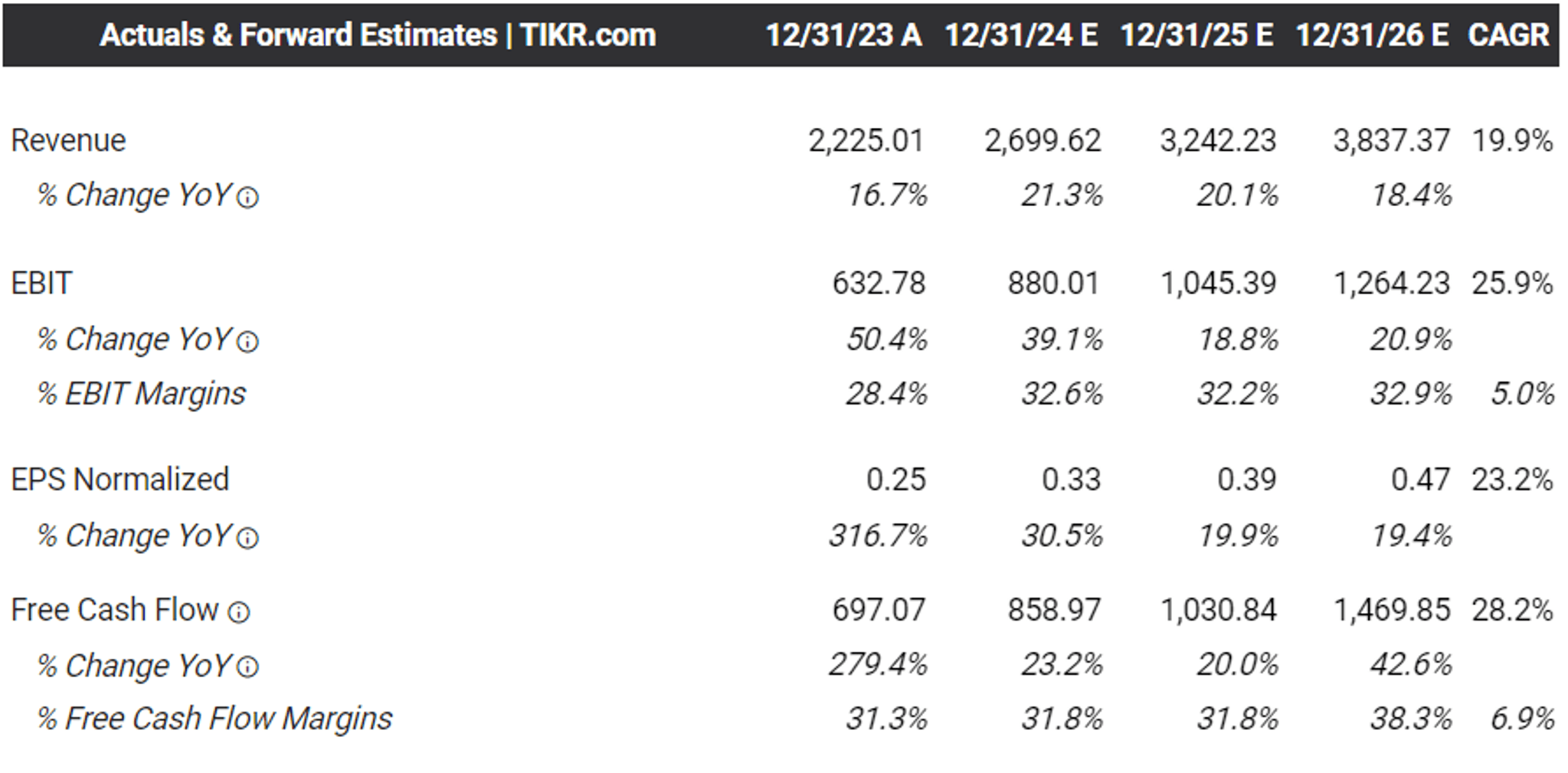 The same has been estimated by the consensus, with PLTR expected to record a top/ bottom line CAGR of +19.9%/ +23.2% through FY2026, building upon the historical top-line growth of +30.1% between FY2018 and FY2023, respectively.