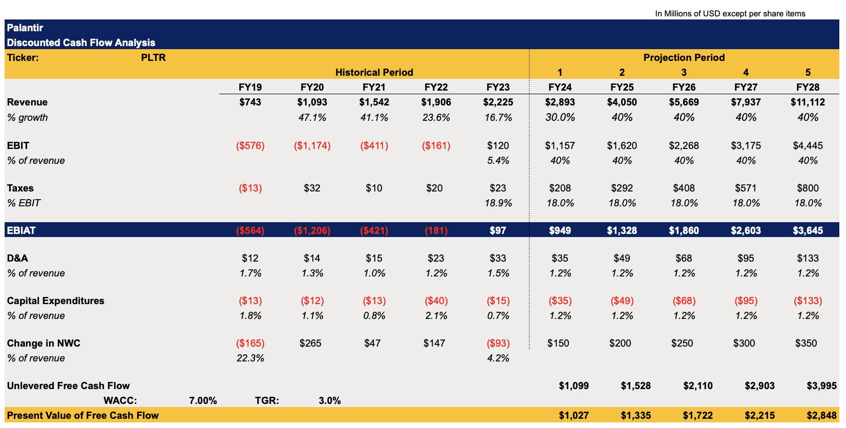 Palantir’s DCF Model (Historical Data: Seeking Alpha, Assumptions: Author)