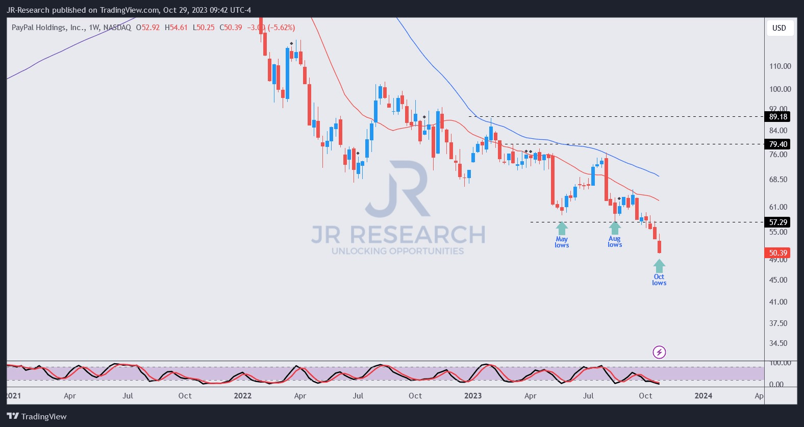 PYPL price chart (weekly) (TradingView)