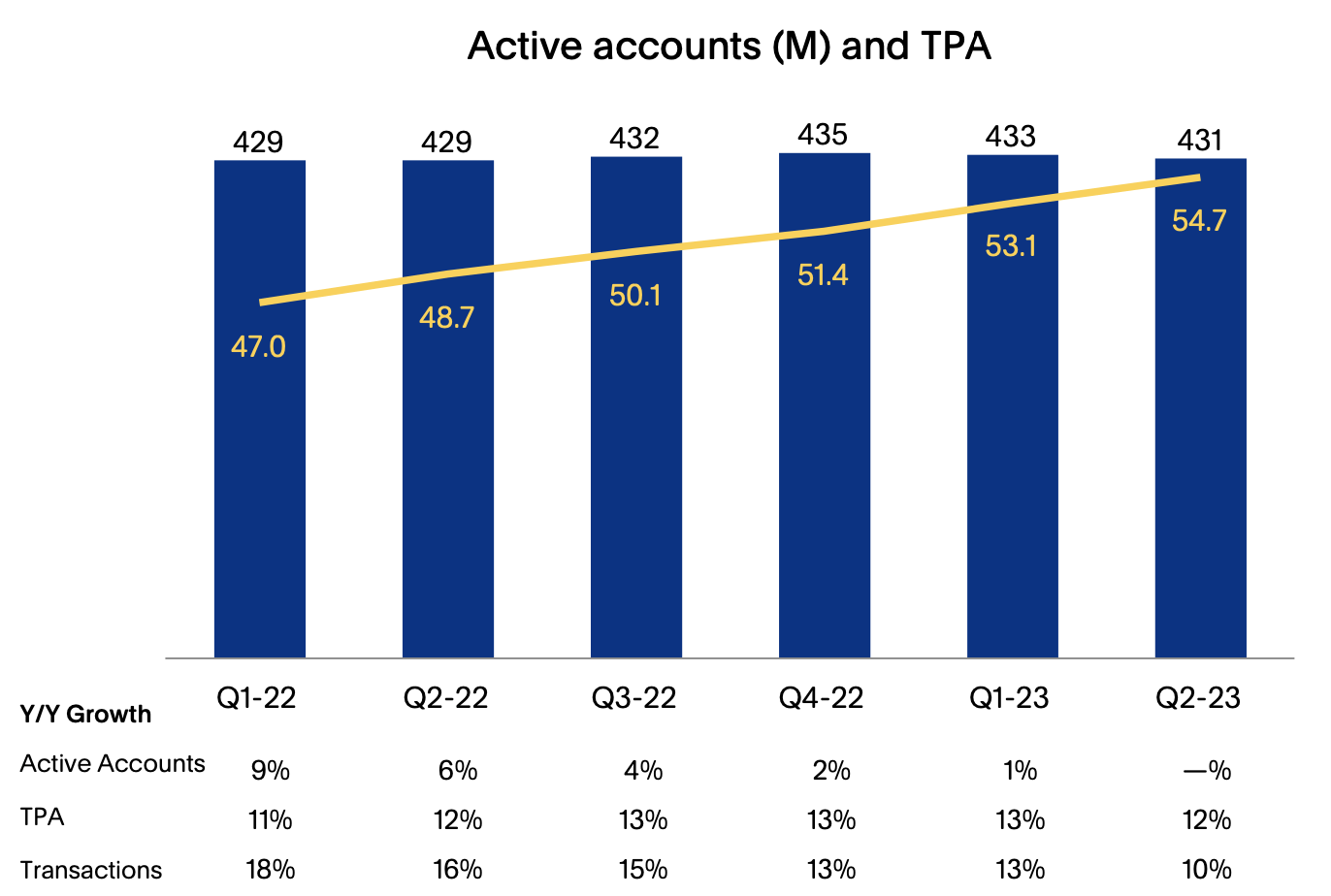 While PayPal has seen a decline in user growth, it’s important to note that the average value from active accounts has increased, signaling a positive trend. According to the latest report from the management team, the decrease in user numbers is primarily due to the company’s strategy of removing inactive accounts from their records, rather than a decline in new user acquisition.