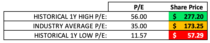 P/E ratio of Competitors (Seeking Alpha) P/E of Industry, Average and Current (Author Calculation) P/E Valuation based on Competitors and Industry averages (Author Calculations)