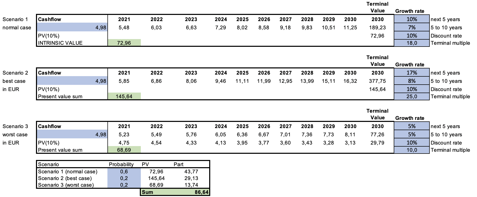 • Using a DCF, we can conclude that the market undervalues PayPal, with an intrinsic value estimation of $86 per share.