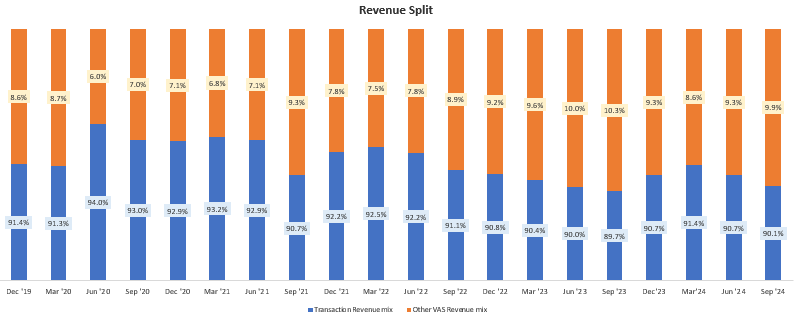 However, the last 2 quarters have shown an improvement in this regard as the proportion of value added services (VAS) revenues has started to increase back toward the historical peak levels of ~10%.