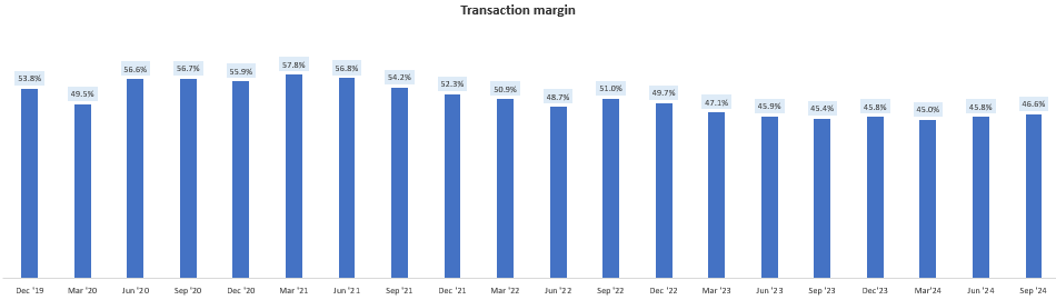 Hence, I expect further transaction margin improvement in the upcoming quarters. Indeed, management has also raised FY24 transaction margin guidance from low-mid-single-digit YoY growth to mid-single-digit YoY growth: