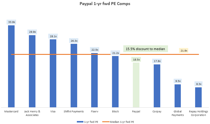 PayPal 1-yr fwd PE Comps (Capital IQ, Author’s Analysis)