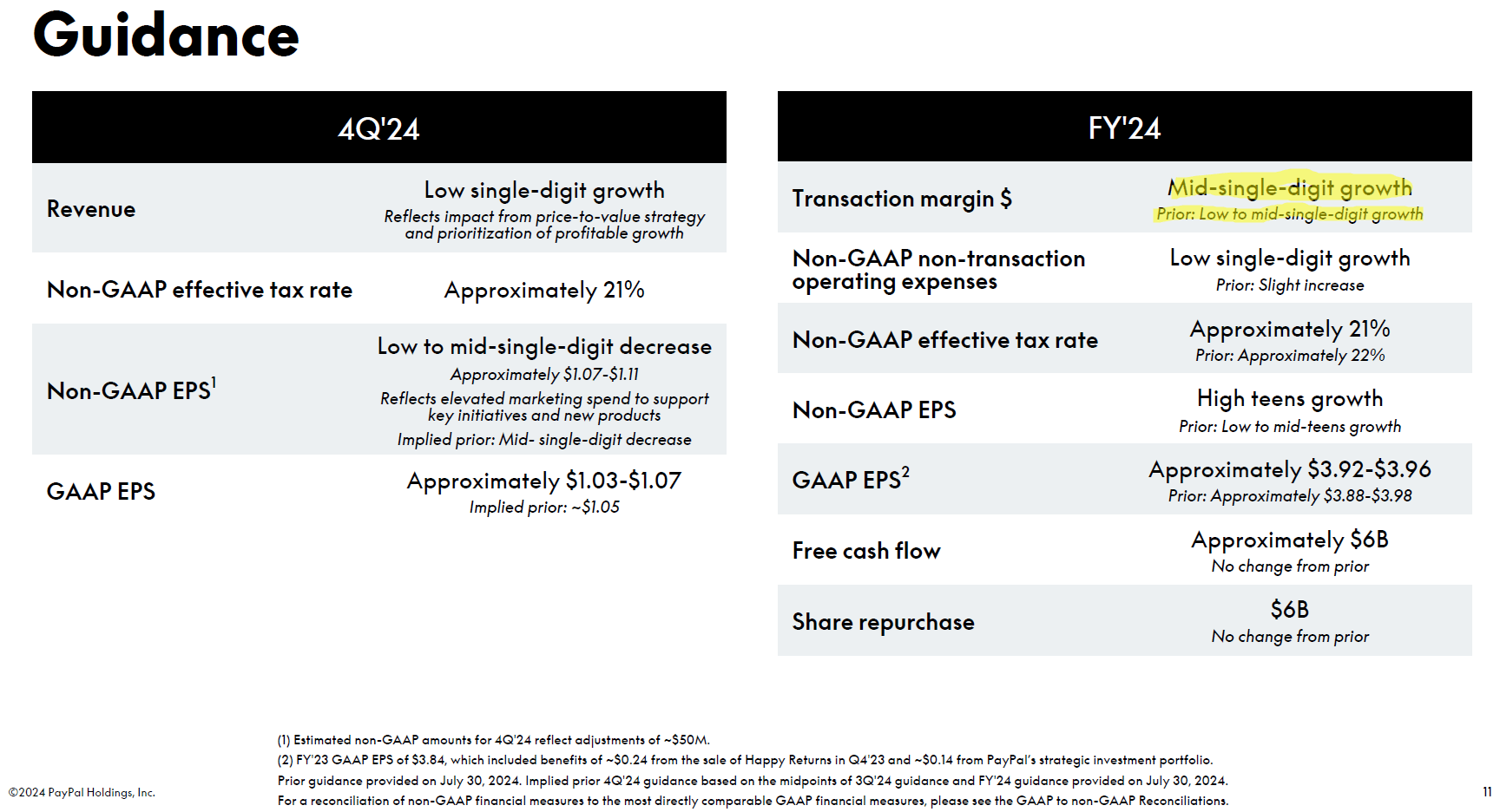 Q3 FY24 Guidance Update (PayPal Q3 FY24 Investor Presentation, Author’s Highlights)