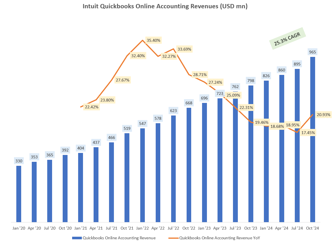 Intuit Quickbooks Online Accounting Revenues (USD mn) (Intuit Company Filings, Author’s Analysis)