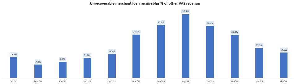 Unrecoverable Merchant Loan Receivables as % of Other VAS Revenue (Company Filings, Author’s Analysis)