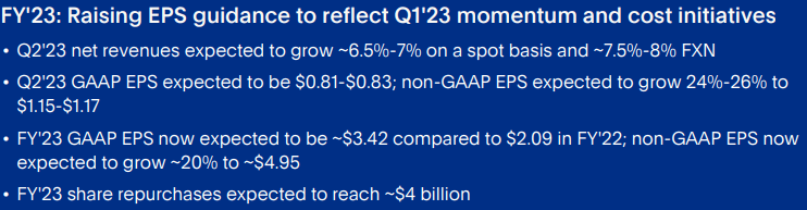 Management has already provided guidance that it plans to spend $4 billion in share repurchase during 2023, which will come essentially from the entire free cash flow the company is projected to generate. Furthermore, after these repurchases, the company will still have around $10 billion authorized to keep repurchasing shares. Please note that the company gives shares as compensation to a high degree, as such there will be somewhat of an offset.