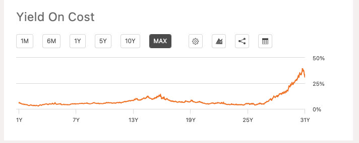 Even though Pfizer has not had the continuous dividend raises that would qualify it as a dividend aristocrat, the trajectory has been upward historically. Regardless if there is or isn’t a cut in the cards in between R&D cycles, this should still be a decade-high dividend entry point to improve your future yield on cost. If the dividend remains as is, even better.
