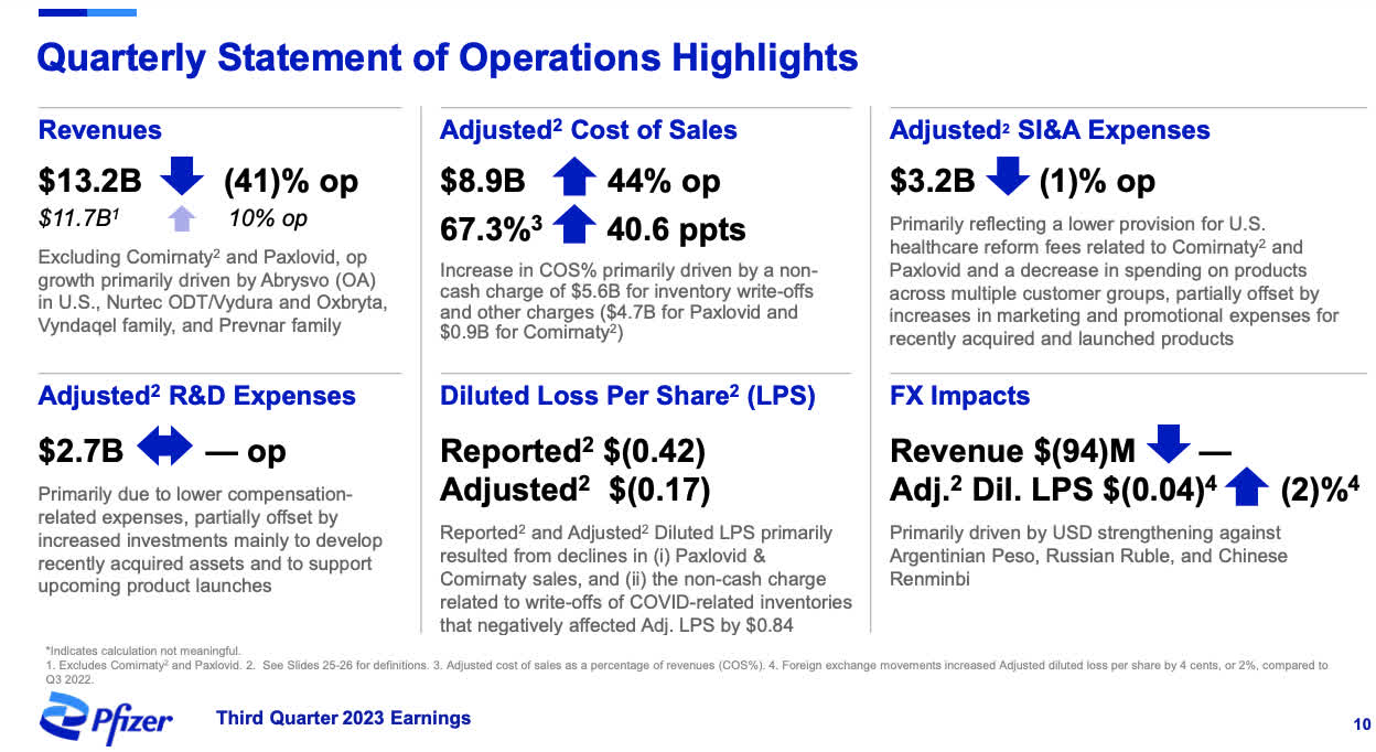 The adjusted cost of sales soaring was a major sore spot in the most recent earnings report primarily brought on by non-cash charges and inventory write-offs for Covid related drugs and vaccines.