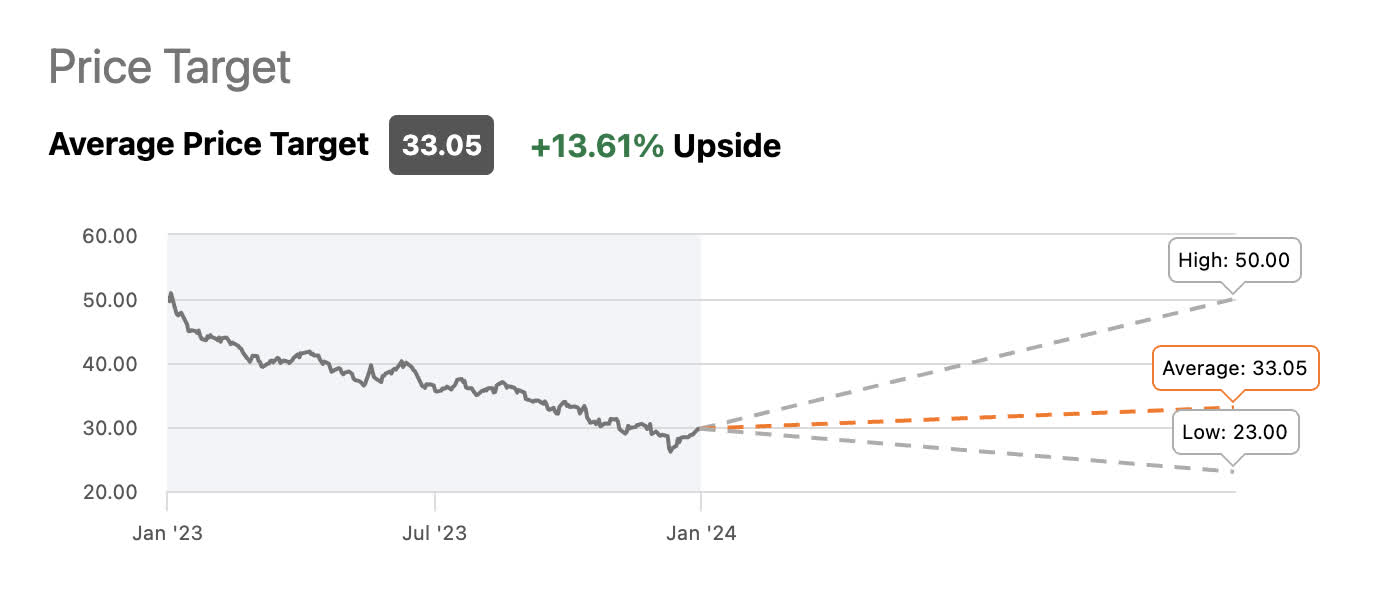 My price target is on the higher end of Wall Street estimates. If there is an analyst 13.6% upside expected from this price level, it could outperform an overheated market, especially with the dividend included in the total return.