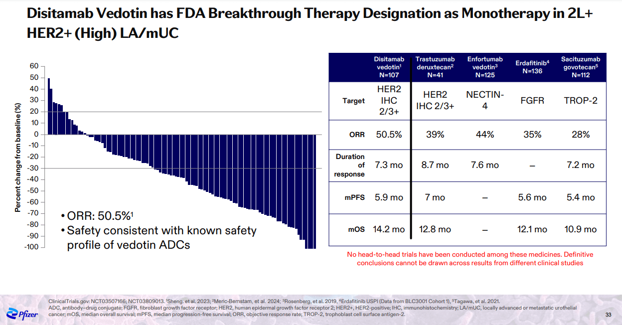 Padcev is already on the market with the potential to expand the set of approved indications, while disitamab vedotin is a HER2 antibody-drug conjugate (‘ADC’) with competitive data to AstraZeneca PLC’s (AZN) and Daiichi Sankyo Company, Limited’s (OTCPK:DSKYF) blockbuster ADC Enhertu.