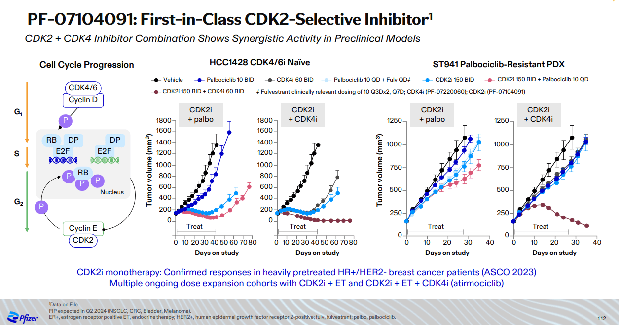 The second candidate is a first-in-class CDK2 inhibitor PF-07104091. Preclinical data show that CDK2 inhibition plus CDK4 inhibition are synergistic and the combination of atirmociclib and PF-07104091 could further enhance their efficacy and peak sales potential.