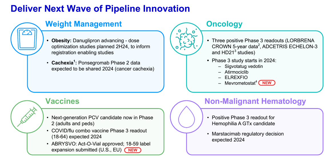 Simultaneously, it’s important to recognize Pfizer’s established leadership in various markets. For instance, in the pediatric segment, Prevnar 20 continues to dominate with >80% market share in the U.S. Additionally, Abrysvo’s performance aligns with seasonal vaccine trends, positioning Pfizer favorably for the expected increase in RSV cases later this year.