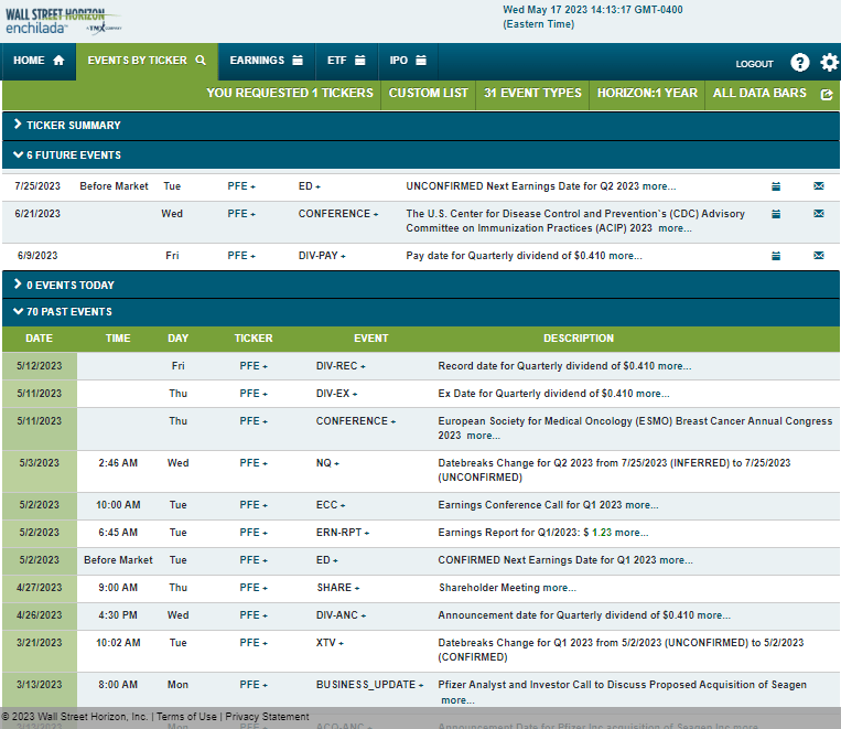 Looking ahead, corporate event data provided by Wall Street Horizon show an upcoming conference speaking engagement on June 21-22 at The U.S. Center for Disease Control and Prevention’s (CDC) Advisory Committee on Immunization Practices (ACIP) 2023. The following volatility catalysts come on July 25 when the Health Care firm has its unconfirmed Q2 2023 earnings date.