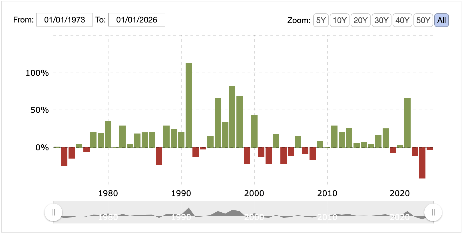 Exhibit A: Pfizer is set to close out its third year in the red, a first for the pharmaceutical company’s stock. (Macrotrends)
