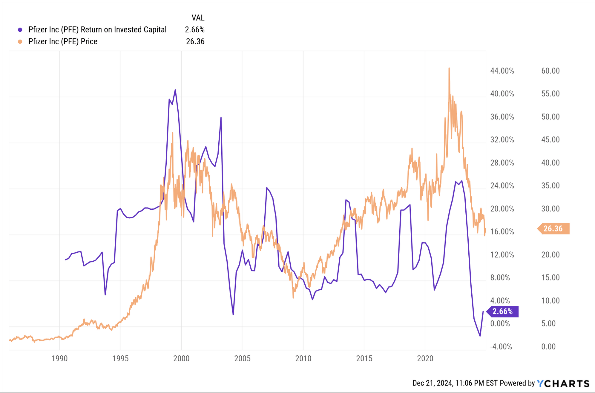 Exhibit F: Pfizer’s correlation between stock price and ROIC. (YCharts)