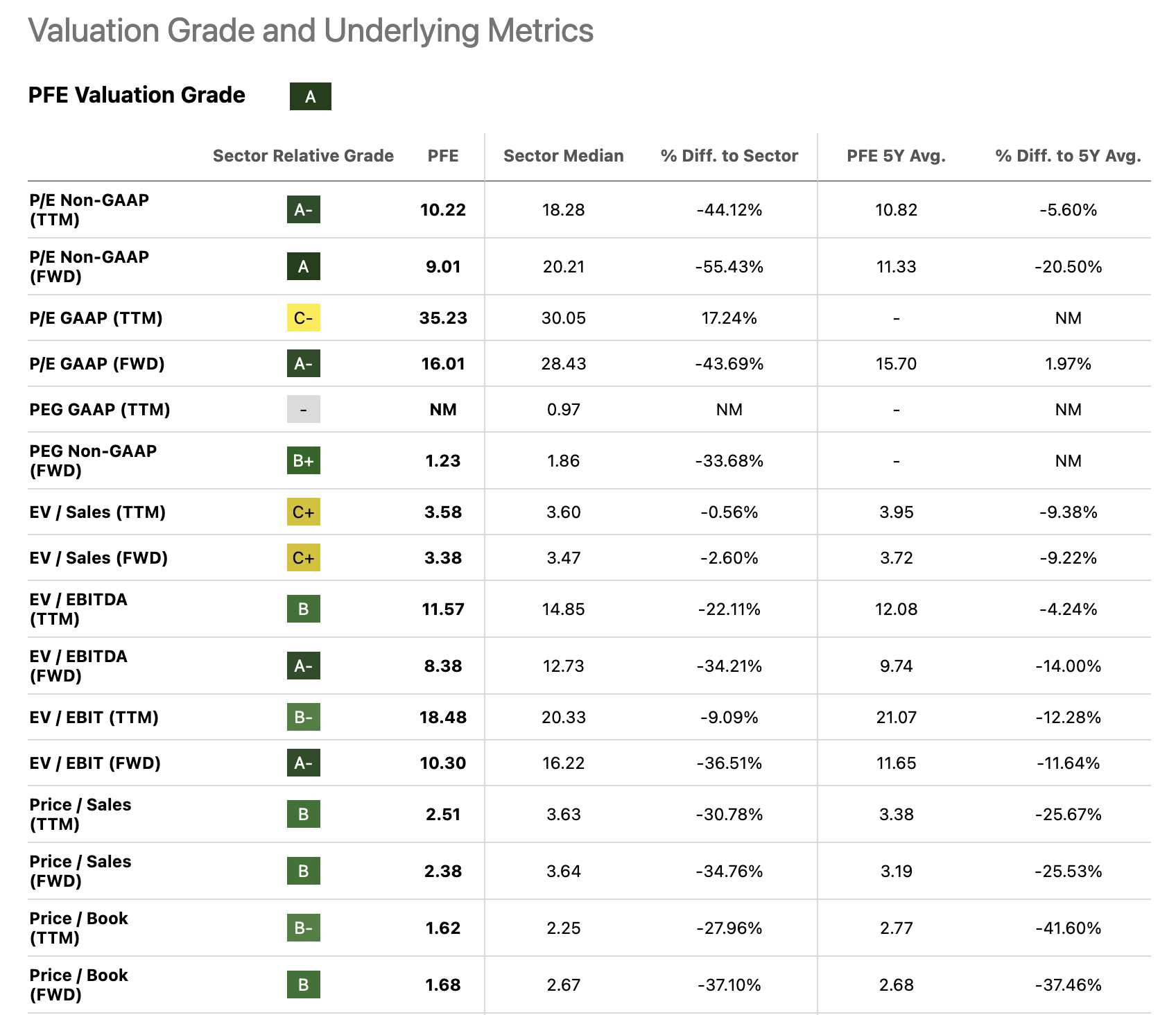 Exhibit G: Pfizer’s valuation metrics point to a fairly reasonable valuation that indicates upside (Seeking Alpha)