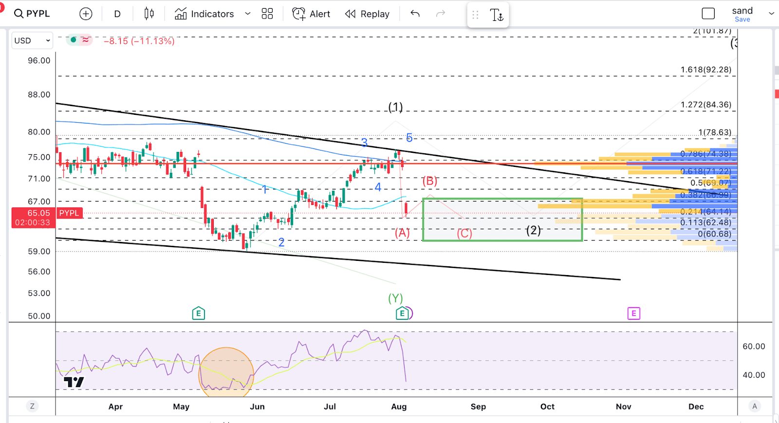 The way I see it, we have completed an impulse off the lows struck in June, following the previous earnings. We are now at the 61.8& retracement, and I’d expect us to find support around this area and the next fib level at $64. We have some support coming in here from the VRVP, and the RSI is already nearing oversold.
