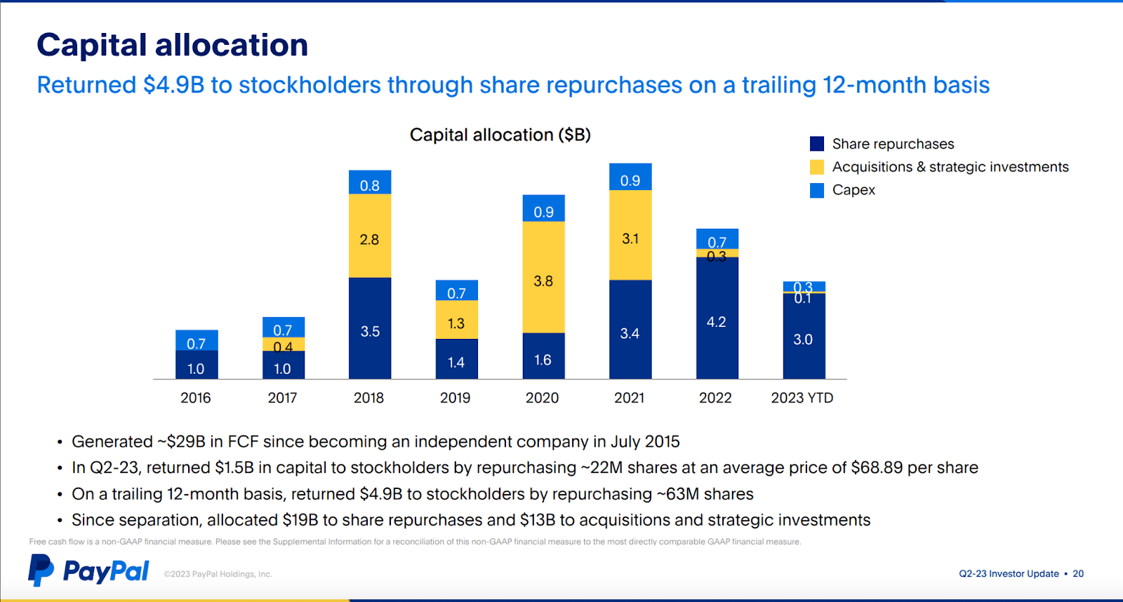 PayPal knows how to give back to investors, and the company, at this point, is still quite cheap.