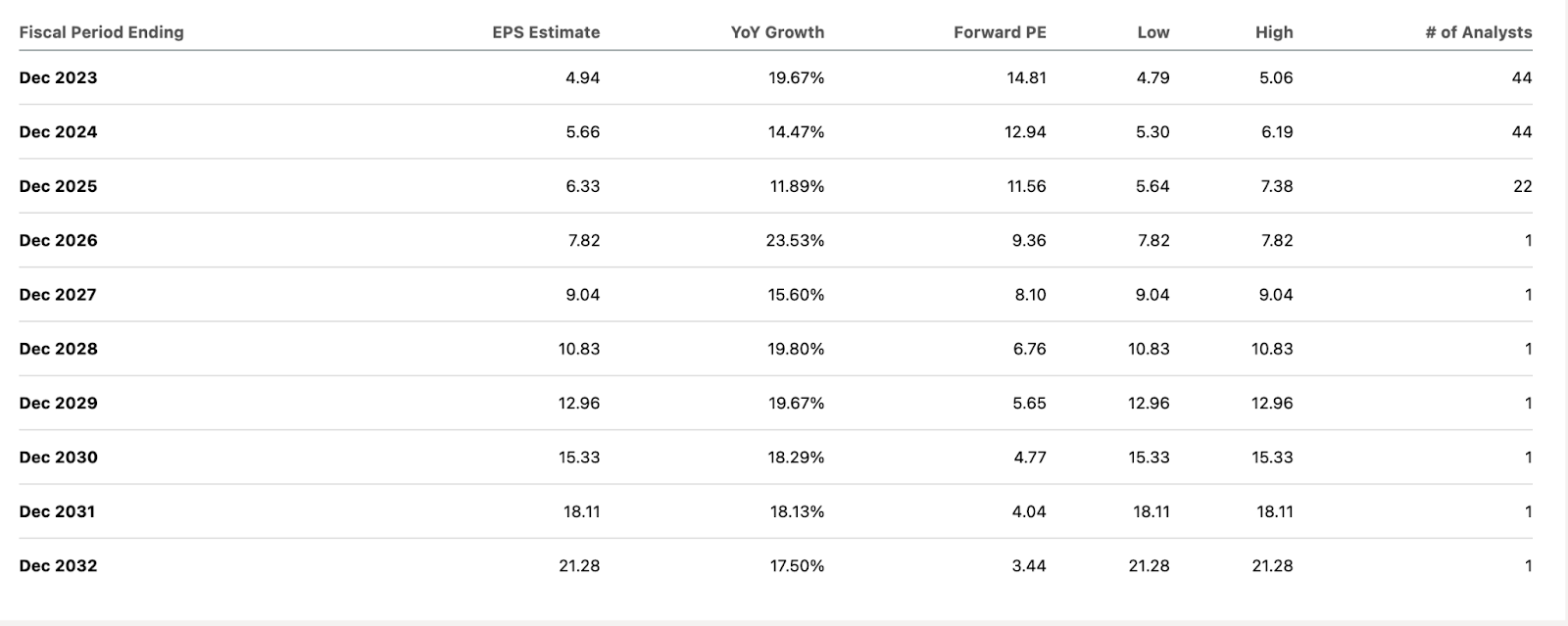 PayPal trades at just above 11x 2025 EPS, and this is based on quite a large consensus of analysts. Compare this to Block, Inc (SQ), which trades at over 23x its 2025 EPS.