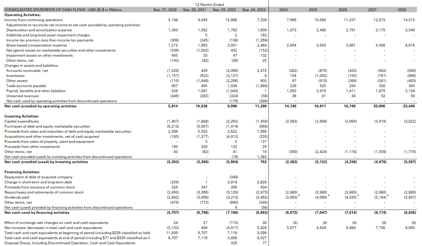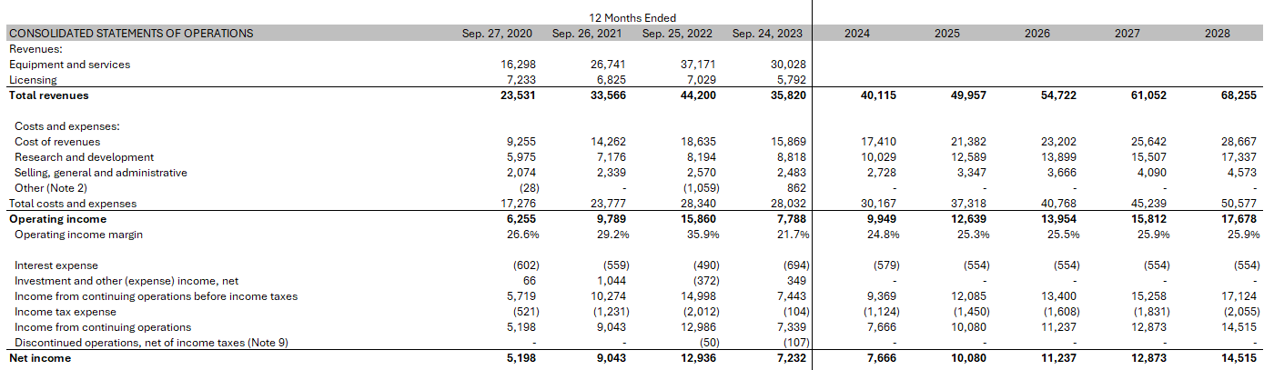 I have also included forecasts of Qualcomm’s 3 financial statements below.