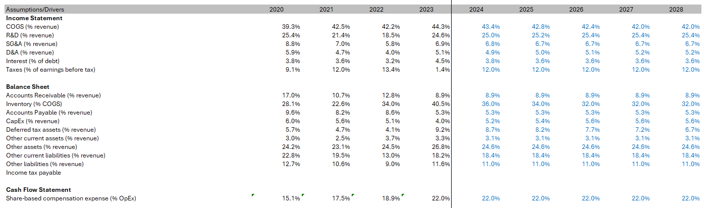 Qualcomm’s balance sheet Qualcomm’s income statement Qualcomm’s statement of cash flows Assumptions/Drivers