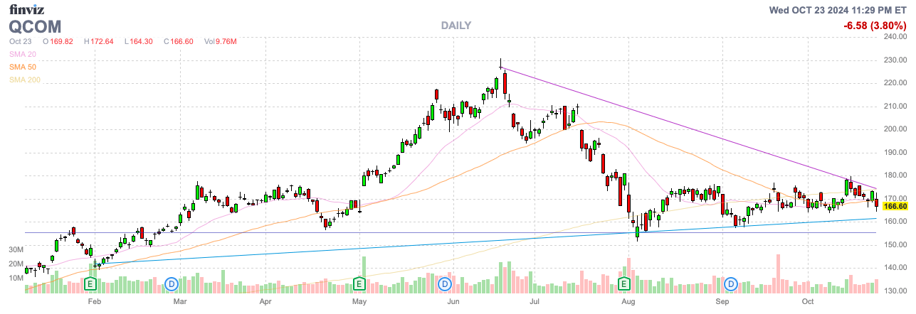 The company is forecast to produce an $11+ EPS in FY25 and the stock only trades at 15x this target. Qualcomm has 1.1 billion shares outstanding, so any royalty hit limited to a few hundred million dollars wouldn’t greatly impact the financials of the company at a hit of anywhere from $0.10 to $0.20.