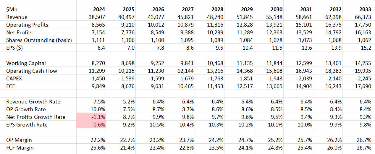 As such, I estimate the revenue will grow by 4.8% organically in FY25, then accelerate to 6% from FY26 onwards when Huawei’s impact will disappear. In addition, I assume the company will allocate 2% of total revenue towards acquisitions, contributing 40 bps to the top line.