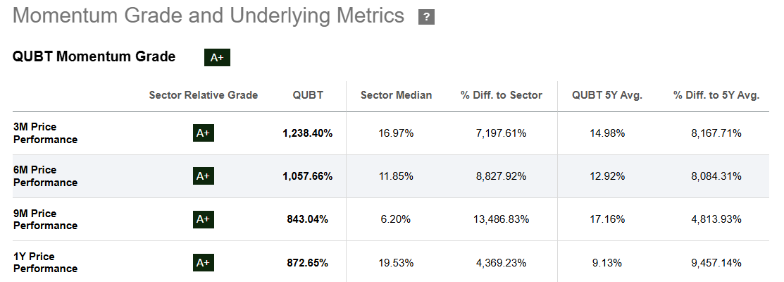 The total assets of QUBT as of 30 September 2024 stood at $76.8 million, compared with $74.4 million at the end of 2023. The $7 million raised through secured convertible debt financing and the additional $4.5 million raised through the ATM facility post-quarter end were driving that increase. Cash and cash equivalents were $3.1 million, up $1 million compared to the year ended 2023. I see, there’s no denying that QUBT is completely dependent on outside capital to operate. Its liabilities almost doubled to $10.9 million from $5.6 million at the end of 2023, mainly because of convertible debt. The number of shares kept standing at ~90 million (so there was even a little drop from the Q2 figure of 90.6 million), but the increasing debt load is worth watching as it could limit liquidity down the road. In fact, I don’t think the debt is the main concern here – it’s manageable and likely worth it. What stands out more is the likelihood that the company will once again dilute existing shareholders. Given how much the stock has soared recently, it seems quite probable in the near term. In fact, over the past 6 months, the stock has increased tenfold, reflecting the market’s enthusiasm for quantum computing.