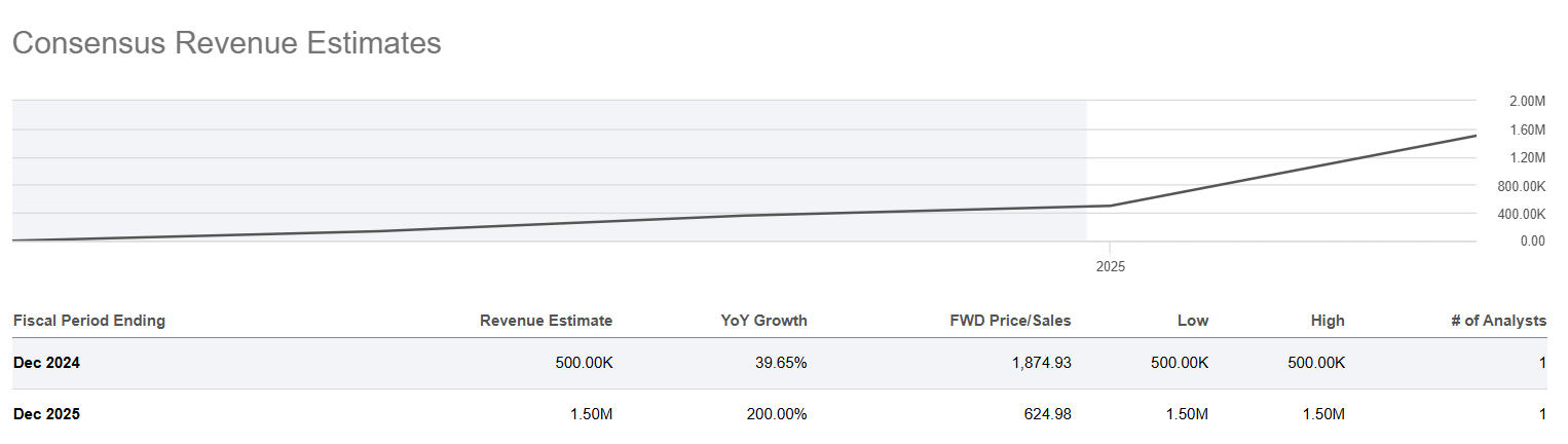 Quantum Computing currently has only 1 Wall Street analyst covering its stock, whose opinion forms the sole consensus, according to Seeking Alpha. This analyst predicts that next year’s revenue (FY2025) will amount to just $1.5 million – when compared to the company’s current market cap of almost $1 billion, this figure is essentially negligible. The recent surge in market cap we’ve witnessed doesn’t appear to be strongly supported by fundamental factors, even when considering the upcoming launch of the factory.