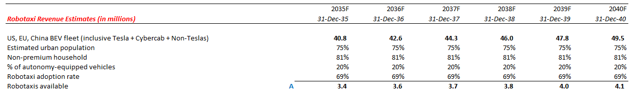 This cohort will represent the remainder of 75% of non-Tesla-owned robotaxis that’ll be operating on Tesla’s Robotaxi platform. These can either be Tesla branded or non-Tesla branded vehicles fitted with autonomous mobility technology, potentially FSD, given assumptions that the company will eventually license the technology to third-party OEMs.