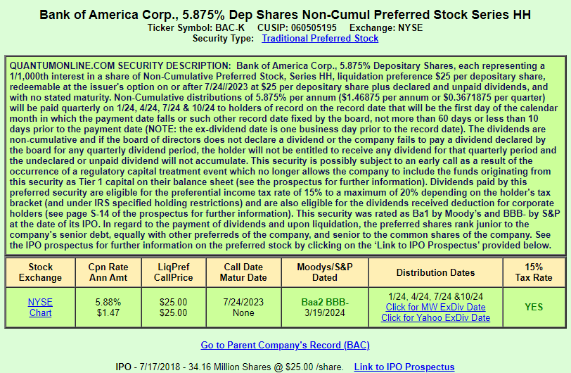 • This article covers both the Series HH and Series SS fixed-rate preferred stocks issued by Bank of America.