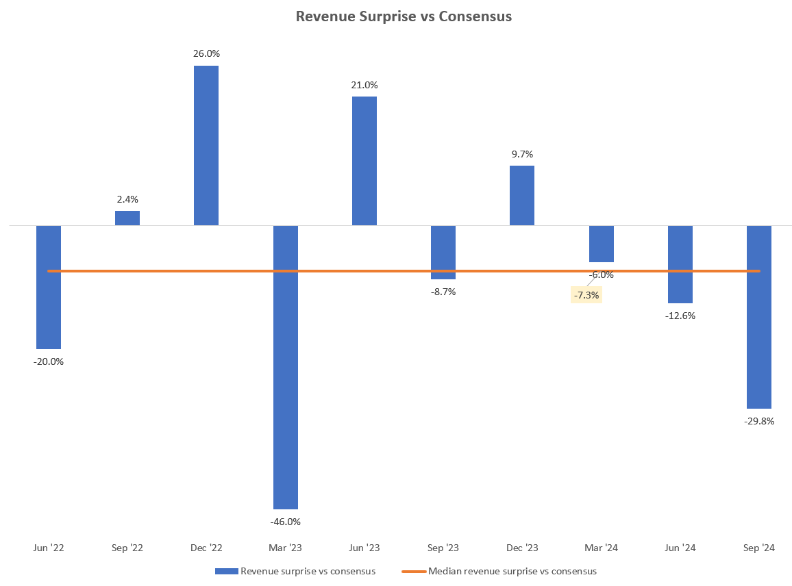 Revenue Surprise vs Consensus (Capital IQ, Author’s Analysis)