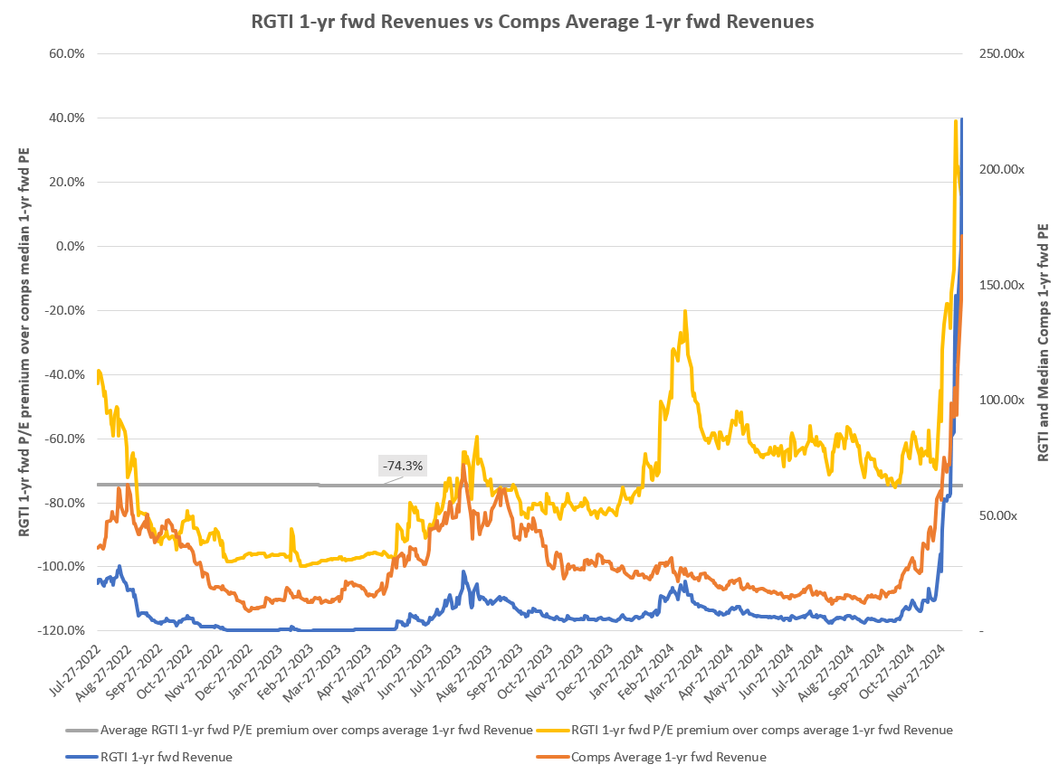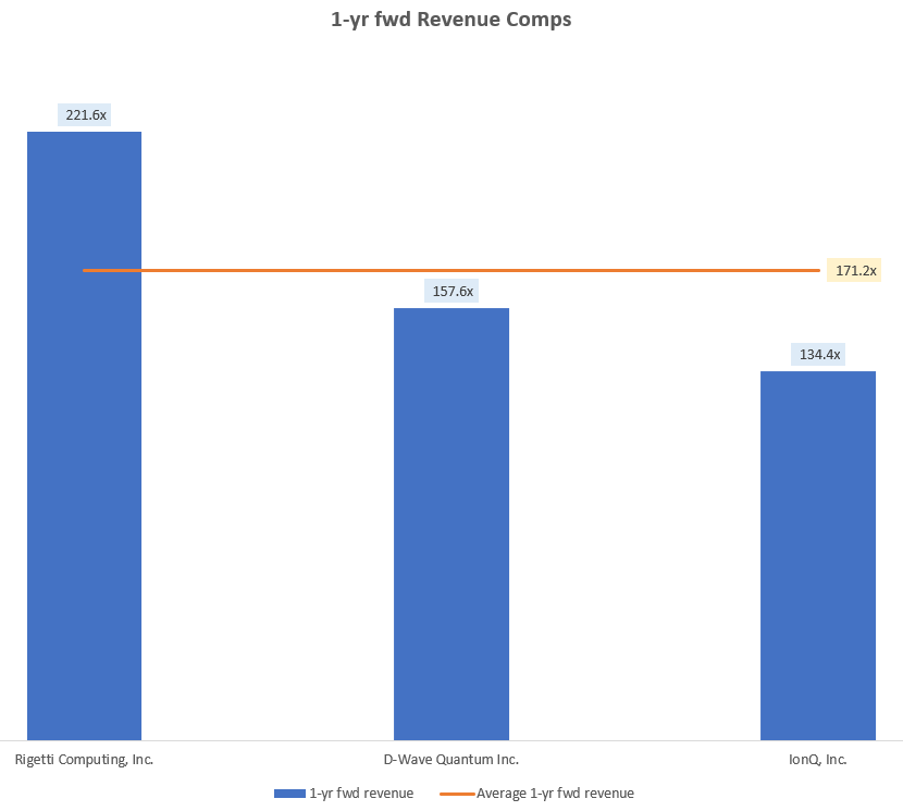 RGTI is currently trading at a 1-yr fwd Revenue of 221.6x; a 29.5% premium to the comps average of 171.2x: