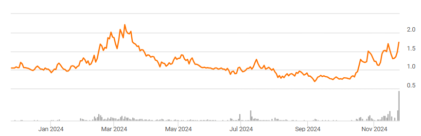 In the past six weeks, the share price has increased over 100%, followed by a sharp increase in volume, especially in the last few days.