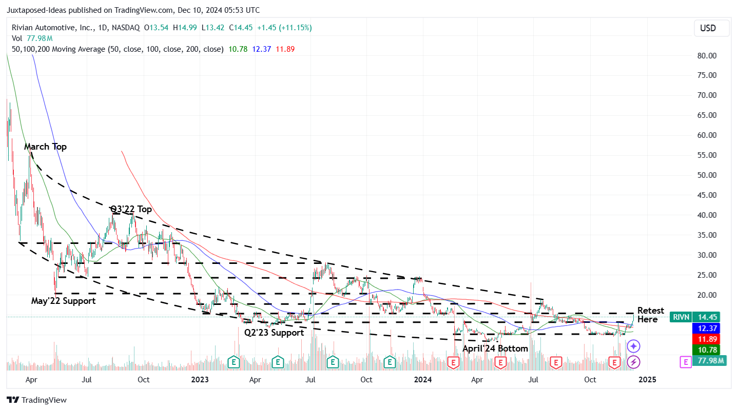 Since then, RIVN has further retraced by -30.3% at its worst, before moderately recovering by late November 2024, thanks to the $6.6B of conditional loan approved by the US Department of Energy’s Advanced Technology Vehicle Manufacturing (ATVM) Loan Program.