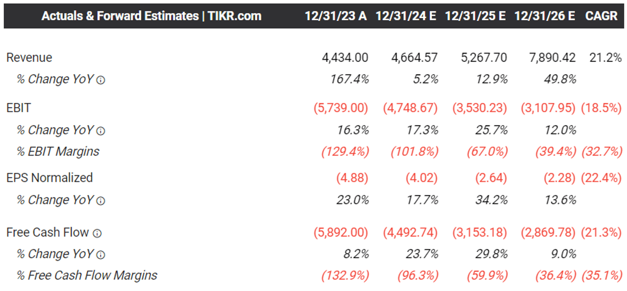 The same has been observed in its FQ3’24 operating margins of -133.7% (-15 points QoQ/-26 YoY), with any operating scale/break even likely still far away.