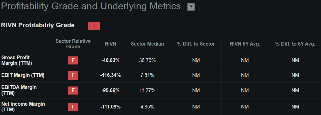 Assuming a Net Income margin of 5% and using its diluted shares outstanding of 995 million gives me an EPS of $0.44 per share. Note that I looked at comparable car companies and the sector median to arrive at the margin assumption. At the sector TTM P/E ratio of 18x this gives me a share price of $7.87. This is about 24% lower than the current share price of $10.32. Now using this methodology I am sure bulls can make the case for a Buy at these levels. However, in my view, Rivian would have to execute its operations perfectly and fend off vast competitive threats just to reach my valuation assumptions. It is because of this I have to take a pass at Rivian.