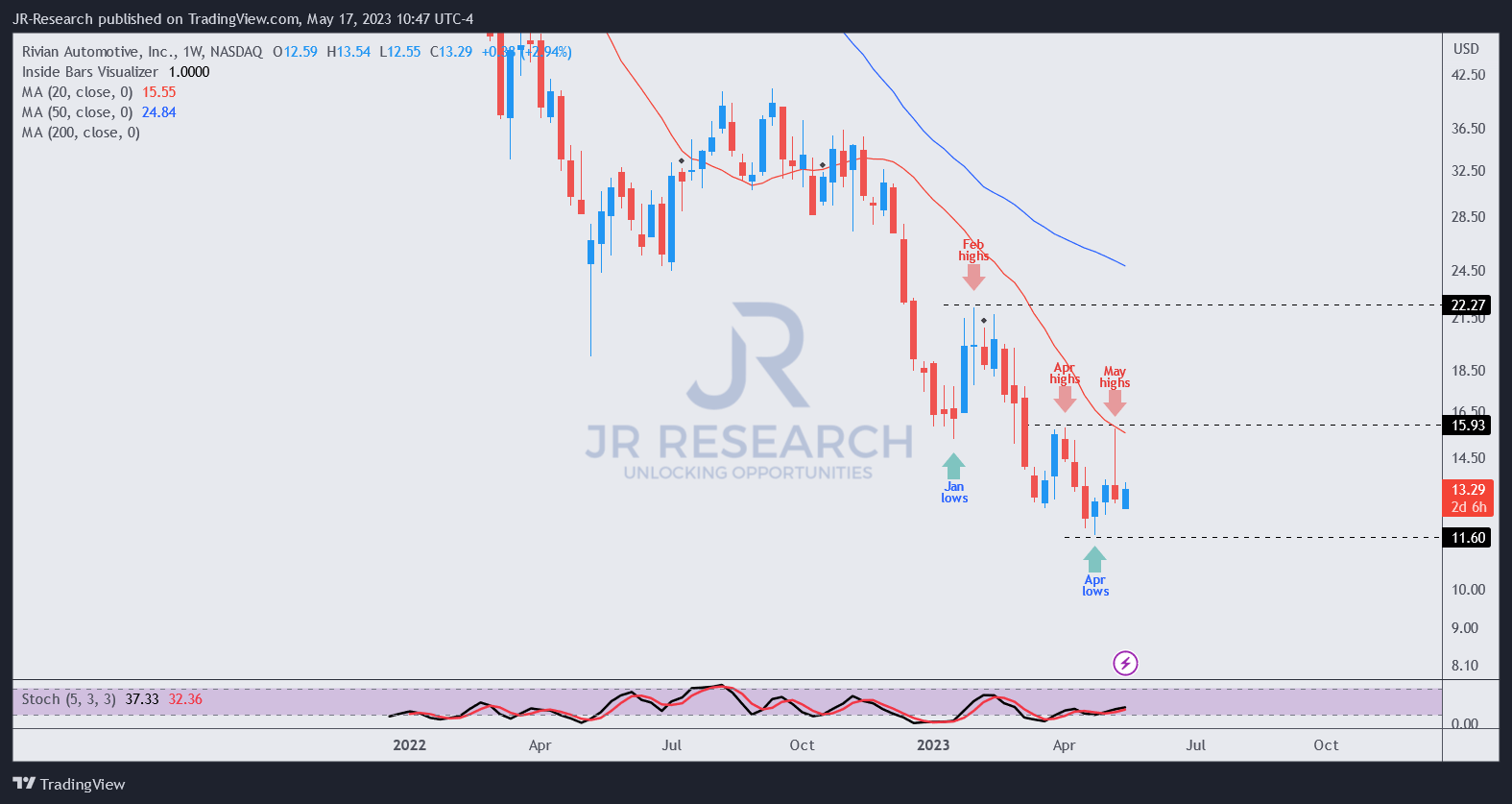 Hence, high-conviction buyers could capitalize on last week’s steep pullback to add more shares, as the buying sentiments seem to have stabilized. If RIVN’s April 2023 lows hold robustly, another surge to re-test the $16 level is possible.