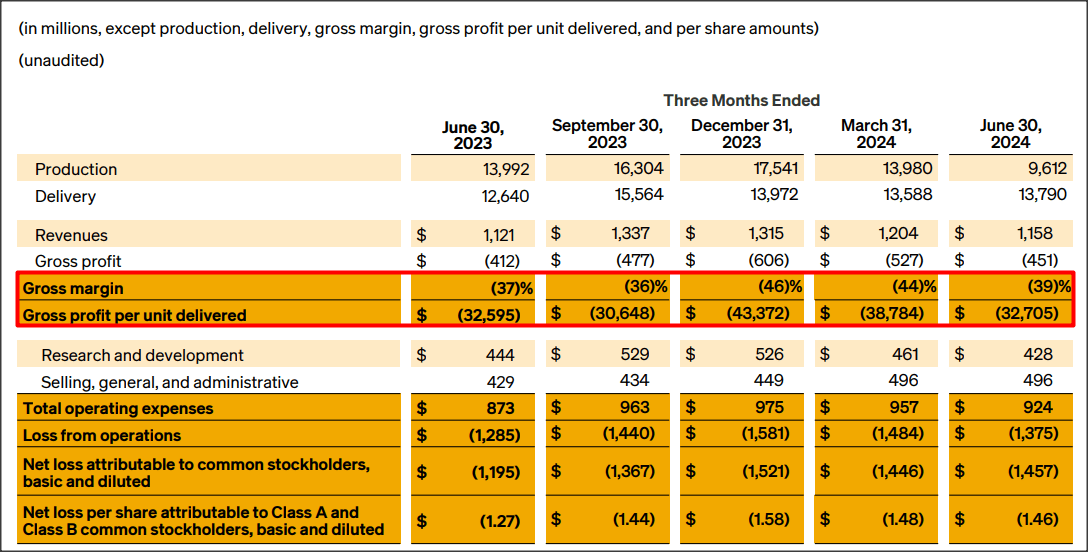 - The company narrowed its gross losses in the second quarter, with a significant improvement in the gross margin per unit metric.