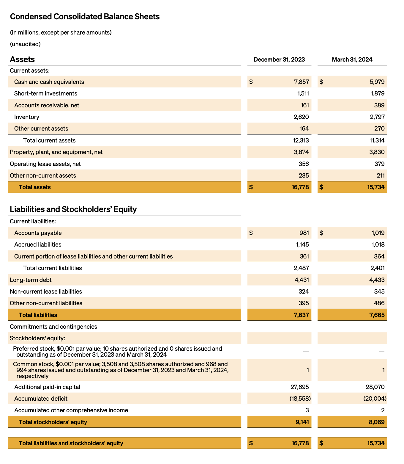 Rivian Q1 balance sheet (Rivian Q1 shareholder letter)