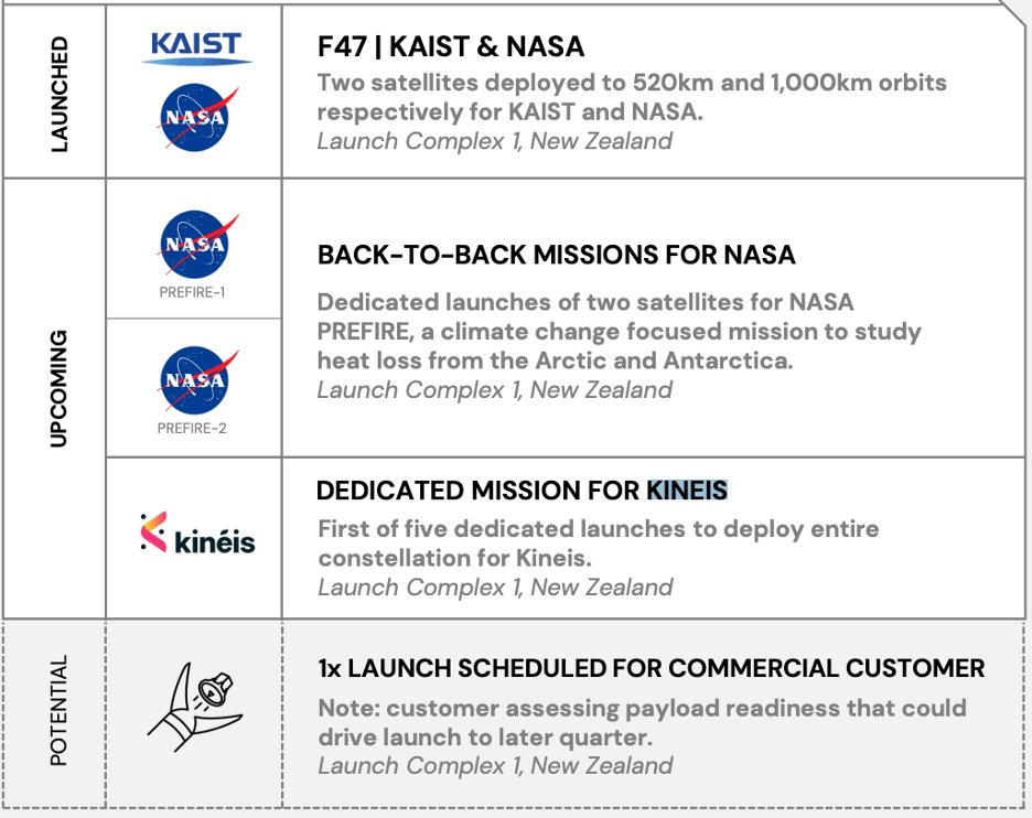 Exhibit 1: Launch schedule for Q2 excluding the two satellites launched for KAIST and NASA